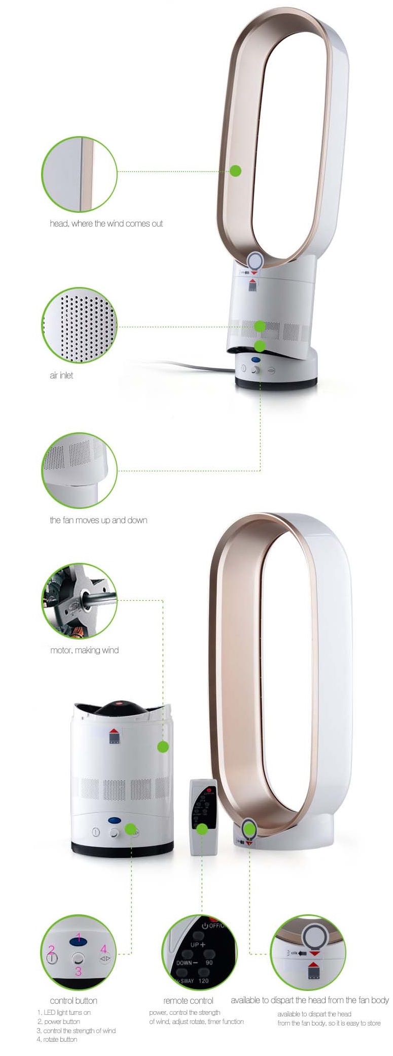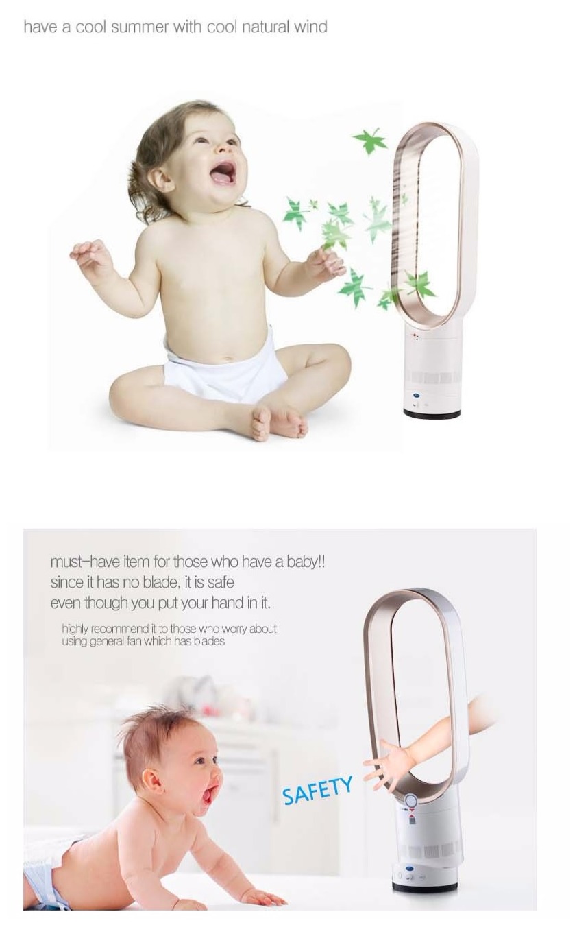 Standing Bladeless Fan is not only nice to see but also good to touch - its bladeless design allows kids and pets to touch the fan without getting hurt, keeping 100% safety in the house. Using this new technology, the long bladeless fan can provide strong and smooth air circulation without using blades, while also has adjustable oscillation for better ventilation.