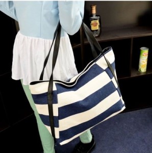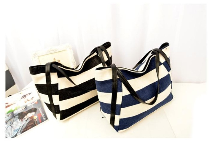 Big Capacity Stripe Canvas Handbag/ Shoulder bag