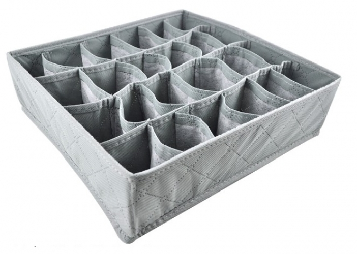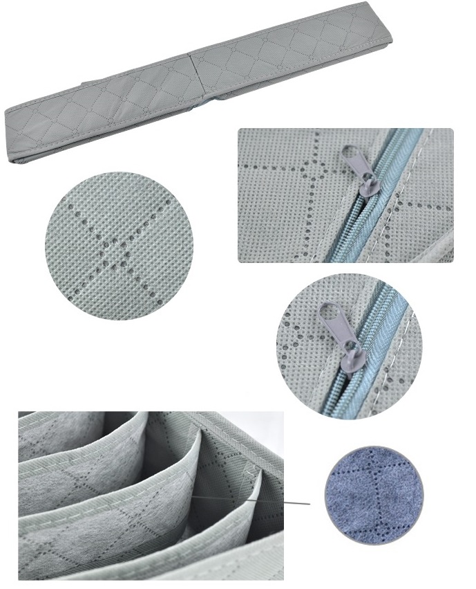 Features:- Ideal for storing clothes, socks, ties and more- Made of bamboo charcoal non-woven fabrics, strong and durable- Helps absorb moisture and smell- Mildew resistant- It can be folded when not in useSpecifications:• Material:Bamboo Charcoal Fiber• Size: 6 slots - Approx.33cm x 9cm x 15cm7 slots - Approx.33cm x 9cm x 31cm24 slots - Approx.33cm x 9cm x 31cm• Color: Grey