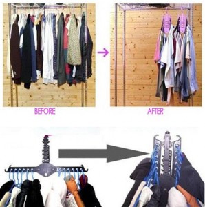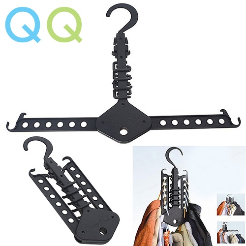 > > > QQ Multifunction Foldable Dual Magic Hanger Portable Clothes Travel Organizer Space Saving Closet Storage Rack HangersFeatures:- Multifunction foldable clothes hanger for closet and travel portable organizer.- Made of durable stainless PVC material.- Can hold up to 12 hangers.- Designed for use in waredrobe closet.- Space saving and foldable.Specification:- Material: Plastic- Size:Maximum length: approx. 47cmFolded: approx. 10.8cm x 32.5cm x 2cm- Colors: Black