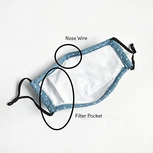 > > > > QQ Unisex Adult Reusable Handmade Cloth Face Mask with Filter Pocket, Nose Wire and Adjustable Earloop 3 Ply Layers Washable Cotton Breathable Anti Dust UV Protection Anti Haze Face Mouth Cover Mask Topeng MukaFeatures:- Made from 100% cotton fabric.- Triple Layers with adjustable buckle on the earloop.- Nose-to-chin coverage with a covered nose wire that molds against the nose- Filter pocket to add filters if you need extra protection. (filters not included)Specification:- Material: 100% Cotton- Size: approx. 21cm x 15cm