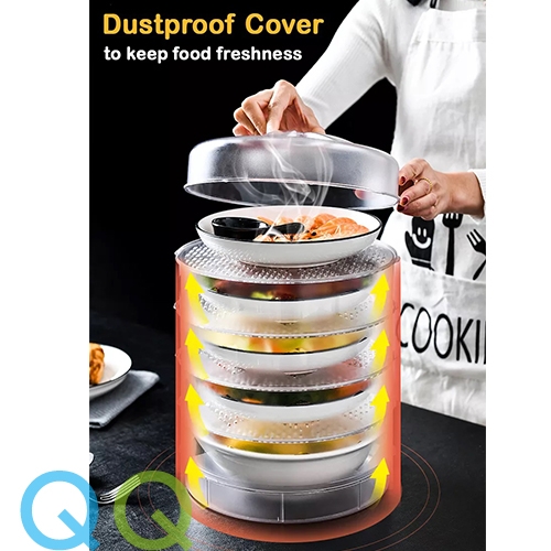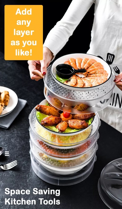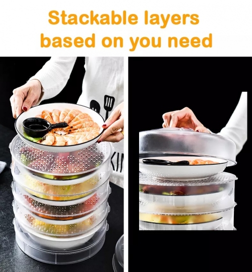> > > QQ 6 Layers Heat Preservation Vegetable Cover Stackable Food cover Thickened Dustproof Dining Table Leftovers Warm Food Storage Tudung Saji BertingkatFeatures:- Dustproof Fresh-keeping Cover- Prevent contamination of food by flies, dust, etc.- Effective Long-lasting Insulation- Effectively lock the delicious temperature of the meals, let the family eat delicious meals.- Transparent Visualization- Transparent material, delicious meals can be seen.- Saving Space- Stable stacking, the number can be increased or decreased arbitrarily.- Curved Handle- Comfortable to hold and easily remove the lid.Specification:- Material: PET- Size:Cover:approx. 7x23.5cmShort section:approx. 6x23.5cmHeight section: approx. 9.2x23.5cmBottom: approx. 4.4x23.5cmSix-piece set: 41.8x23.5cm- Color: Transparent