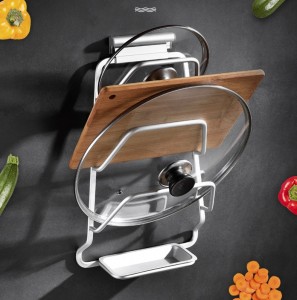 > > > QQ 3-Layers Space Aluminum No Drill Hole Kitchen Cabinet Door Mount Pot Pan Cover Lid Holder Rack Organizer Wall Hanging Storage Kitchen Space SaverFeatures:- Perfect hanging hook to keep the cover of pans or pots neat and organized.- Made of high quality aluminum, Eco-friendly, sturdy and durable.- Wall-mounted design, no drilling needed, easy to install.- Smooth surface, easy to clean with a piece of damp cloth.Specification:- Material: Space aluminum- Process: Oxidation- Size: approx. 34.7*22*10.5cm- Color: Silver