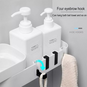 - Four hooks can be used to hold bath balls and towels.