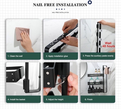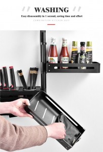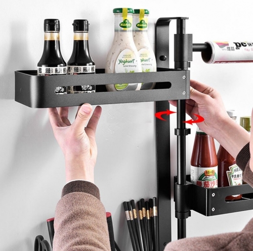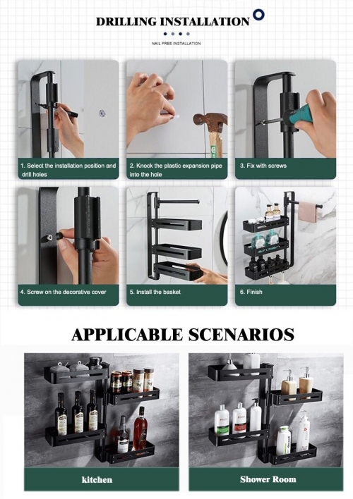 > > > QQ Kitchen Shelf Corner Rotation Seasoning Rack Aluminum Alloy Bathroom Multi-layer Shelf without Hole Wall Hanging Rotary StorageFeatures:- This shelf is made of high-quality aluminum alloy and has a corrosion-resistant surface. It is suitable for humid environments such as bathrooms (even showers) and kitchens.- Rotation design, easy to pick up. The height of each layer basket is adjustable, more intimate.- Designed for showering, there are many drain holes on the shelf, and the water disappears quickly after the shower.- This space-saving cage takes up little space but provides a lot of extra storage space.- In the bathroom, put the toiletries on the shelf, such as shampoo, conditioner, shower gel, etc., and put the towel under it.- In the kitchen, a floating rack can be used to hold condiment bottles, and a towel rack can be used to hang towels.- Also suitable for bedroom, living room, office, etc.Specifications:- Material: Space Aluminum- Size: approx. 40 x 42.6 x 13.5 cm- Color: Silver