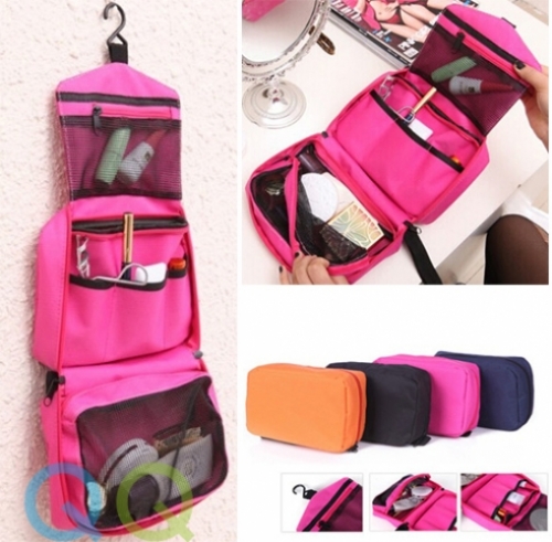 > > > QQ Storage Bags Hanging Cosmetic Bag Business Makeup Case Women Men Travel Zipper Organizer Pouch Toiletry Wash Bath KitFeatures:- Soft, comfortable, portable cosmetic bag, can be easily hung on the wall.- Breathable mesh pockets.- Good for travel, home, outdoor activities, etc.Specification:- Material: Oxford- 2 zipper compartments; 3 slot pockets- Zipper closure- Size: approx. 22 x 14 x 8cm- Color: Black, Blue, Orange, Pink