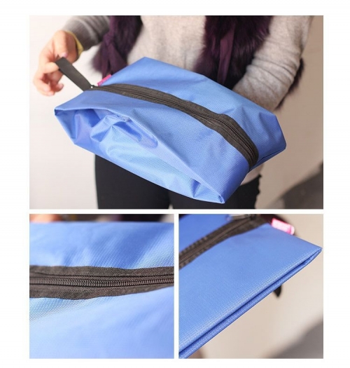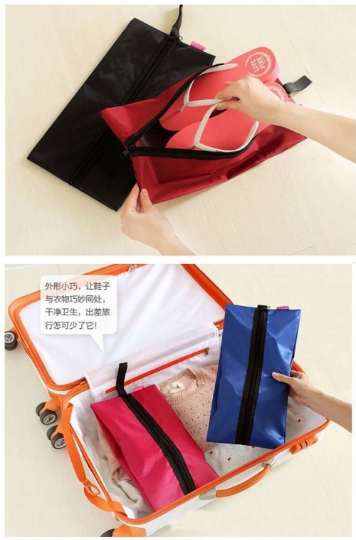 > > > QQ Portable Waterproof Shoes Pouch Travel Outdoor Toiletry Storage Tote Dust Bag Case Organizer Zipper Beg Kasut Kalis AirFeatures:- Keep Clean each kind of footwear during trip(slippers, sneakers, and shoes).- Shoe Bag has ample space to fit your shoes and protects other belongings from dirt.- Waterproof- Easy to carry with Flexible HandleSpecification:- Material: Oxford- Size: approx. 37.5 x 17.5 x 14cm- Color: Blue, Red, Pink, Grey, Green