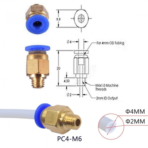 > > > > PC4-M6 Teflon Tube Pneumatic Straight Fitting Connector for 4mm OD tubing M6 6mm Reprap 3D Printer