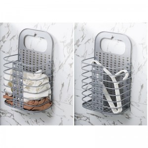 > > > QQ Folding Hanging Laundry Basket Dirty Clothes Storage Washing Hamper Basket Collapsible Laundry with Free 2 Wall Hooks Bakul Baju Boleh Lipat Space Saving for Bathroom Living Room KitchenFeatures:- Easy and safe to install with included hook, no drilling, no screws and no holes.- Foldable design for easy storage when not in use, no space, with handle, easy to use- Multiple uses laundry basket: Perfect for laundry room, bedroom, bathroom, walk-in closet, dorm, etc.- Side handle make it easy to carry along to your washing machine or to hang it on the wall to save spaceSpecifications:- Material: PP- Size: approx. 28cm x 17cm x 46cm- Color: Grey