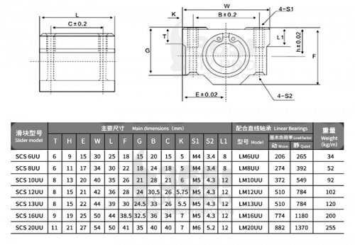 Model:SCS8UU,SCS10UU,SCS12UU,SCS16UU,SCS20UU,SCS25UU,SCS30UU