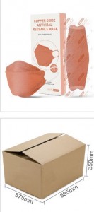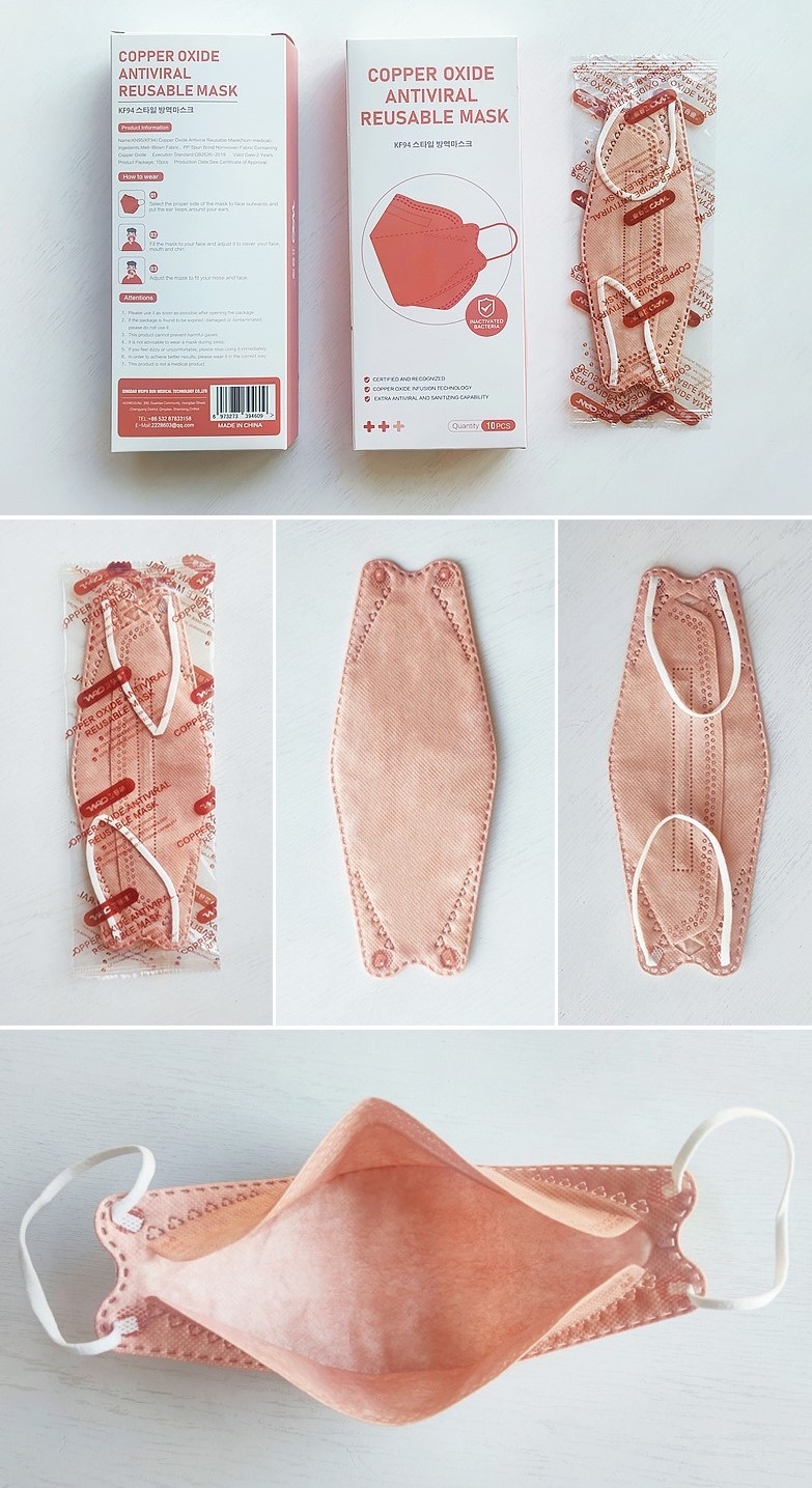 COPPER OXIDE ANTIVIRAL KF94 REUSABLE FACE MASK 4 PLY 1. Can use in public, filter particulate matter in the air, block droplets, blood, body fluids, secretions, etc. 2. Eliminate virus bacteria within 10 minutes. 3. Reusable, high inactivated rate. 4. Duration and time of usage is sixfold higher than the average mask. 5. Place the mask in a dry, windy or open-air area. Suggestion: Wear a copper oxide KN95 / KF94 mask (replace a new one 2-3 days)