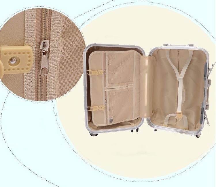 With Zipper free clamshell functionality, Premium Metallic Travel Luggage Bag (Zipperless Aluminum Frame ) is stable in structure and excellent in style. Equipped with Aluminium-alloy draw bar with supurb bearing capacity, and perfect side resistant stand cases, this suitcase is well known with its good impact and heat resistance hard shell that made with PC and ABS, which is super lightweight and wouldn't add bulk to your baggage weight.