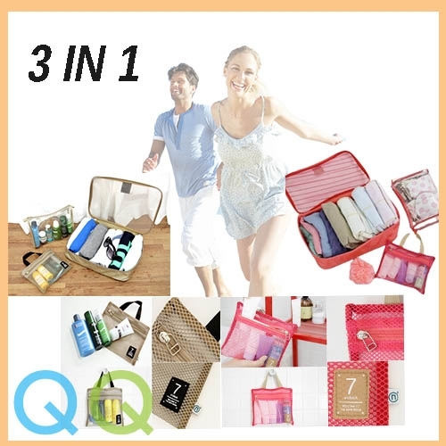 > > QQ 3-in-1 Travel Pack Organizer 2 Color Travel Organizers Makeup Bag Travel Kit Inner Wear Bag Waterproof High Capacity Toiletries Storage Cosmetics Bags For Ladies And Guy Travel Kit