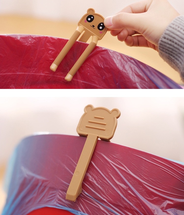 - The garbage bag is clipped to the edge of the garbage can. Don't worry about leaking garbage bags. Just clip the garbage bag on the edge of the garbage can be used.