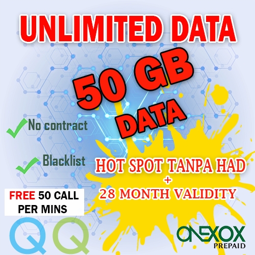 > > XOX ONEXOX 50 GB Postpaid Unlimited Data High Speed Internet No Contract Blacklist Can Apply Pascabayar Termurah Internet Laju Menjimatkan Panggilan Telefon Tanpa Had ke Semua Rangkaian