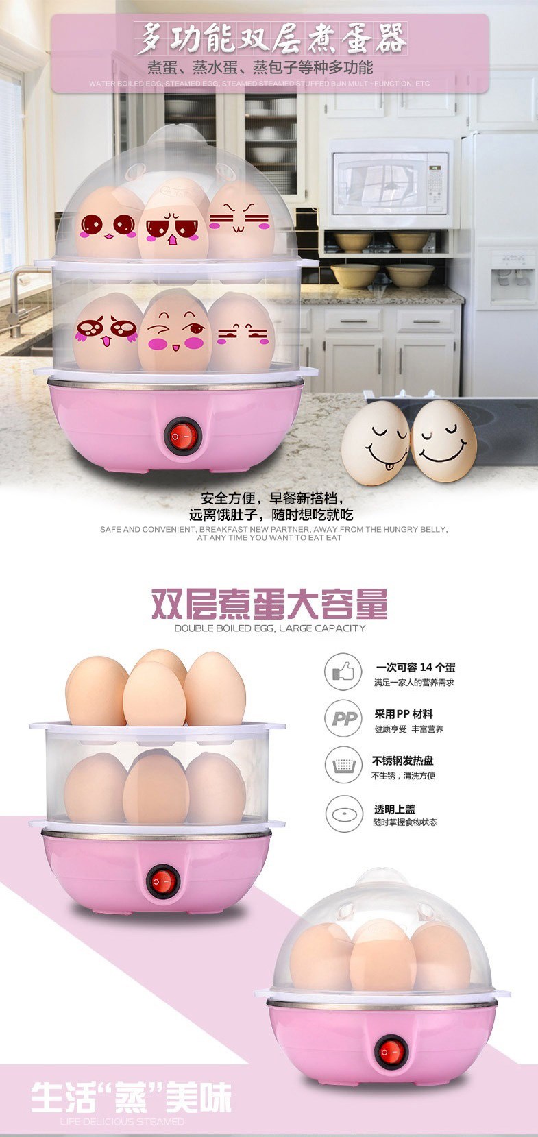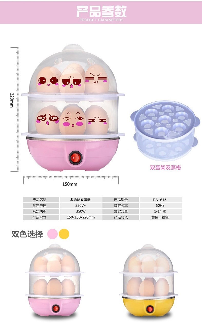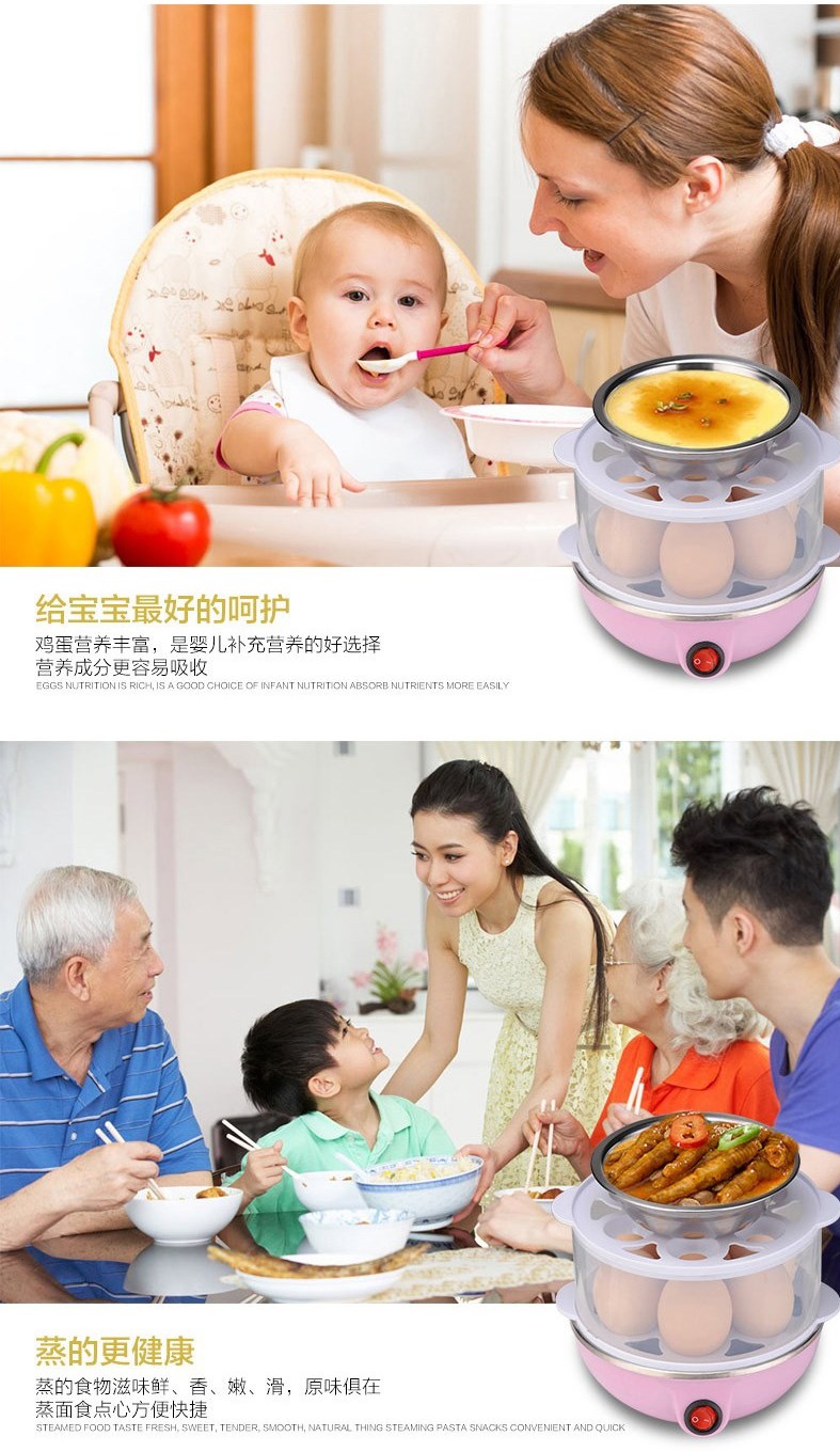 Double Layer Multi-Function Electric Egg Cooker Boiler Steamer