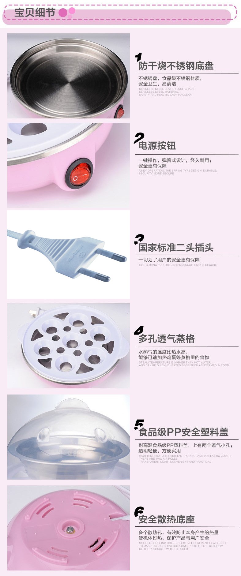 Easy And MUST have item in House for Busy life. Can Cook 2 dishes in once. (Steam Egg/soup/meat/vegetable) By Using one clickNo worry of electric shock or burn up as the steamer will auto off when the water is dry. Professional Heating Element help your food taste good.