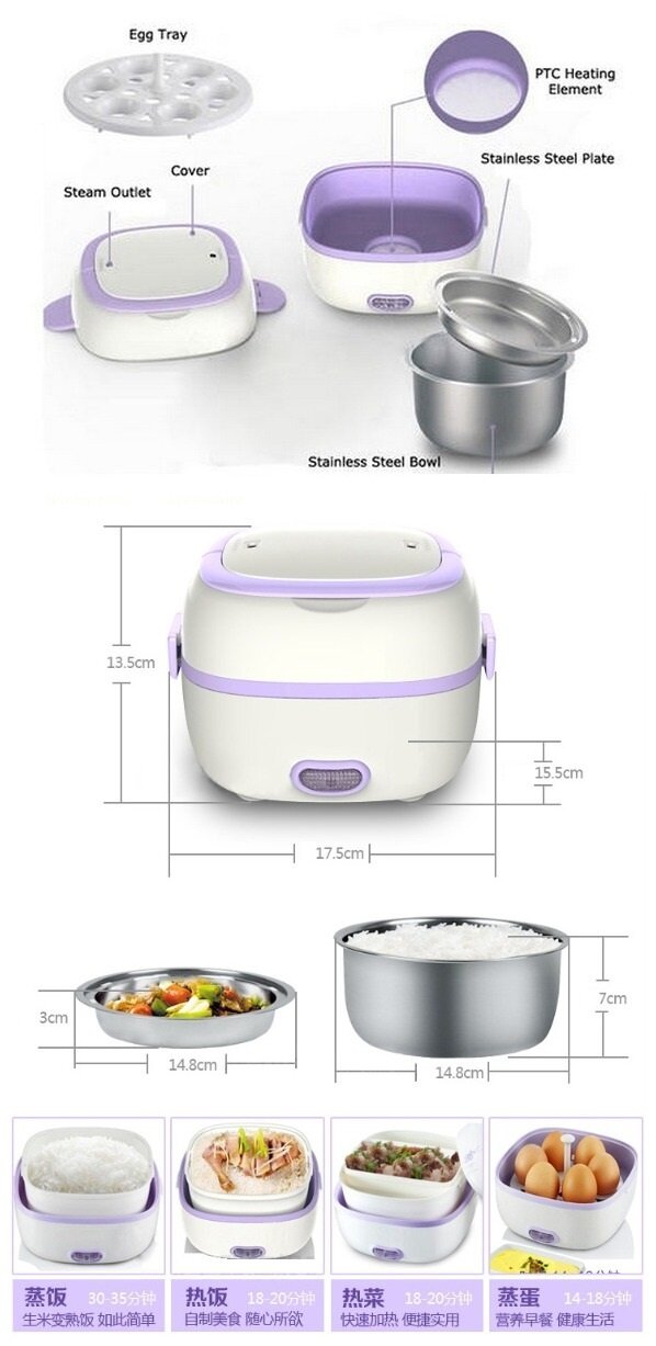 Multifunction Electric lunch box stainless steel Steam heating cooker
