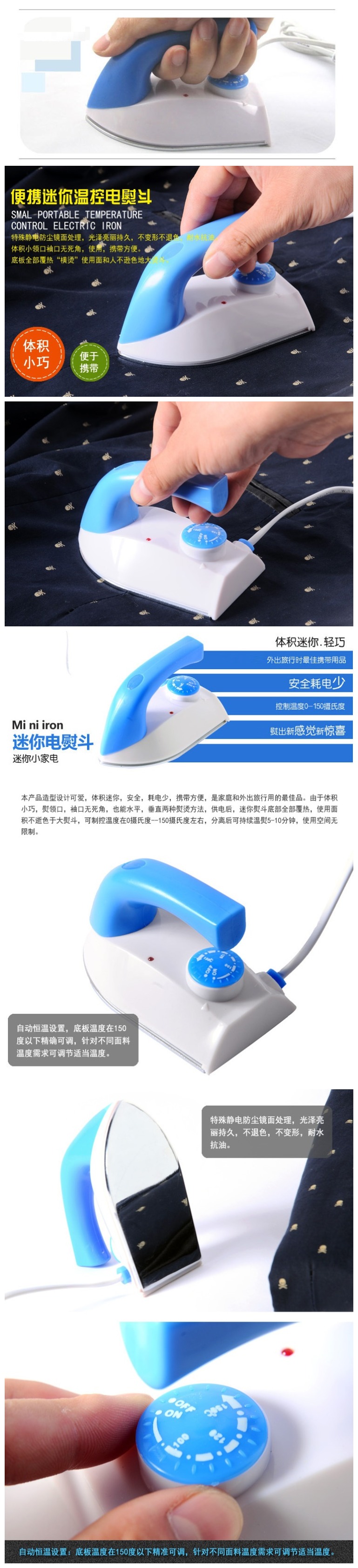This mini iron has a temperature control button, you could adjust the temperature a little according to different cloth materials. Mini size could reach every small corner. The polished mirror steel is dust, water and oil proof. Safe and easy to use.