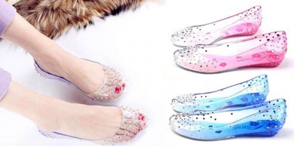 • The flat plastic shoe has a slight open toe and ultra comfy insole