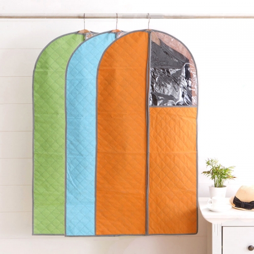 > > > QQ Korean Non-woven Clothing Dust Cover Suit Coat Dress with Transparent Window Hanging Organizer Wardrobe Closet Storage Protector Garment Bags Travel BagFeatures:- Keep clothing safe from dust, moisture, and moths, whether used in the closet or garage.- Can be folding into a handbag, convenient to use- Zipper design, convenient to put on or take off your clothes- With a hanger hole, easy for hanger to go through, and hang your clothesSpecifications:- Material: Non-woven- Size:S : Approx. 60*90cmM : Approx. 60*100cm- Color: Orange, Green, Blue
