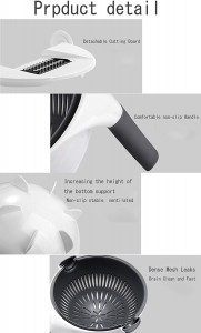 - Multifunctional vegetable cutter, slice, shred, flower slice, grind, drain in one step, cut and wash easily and quickly