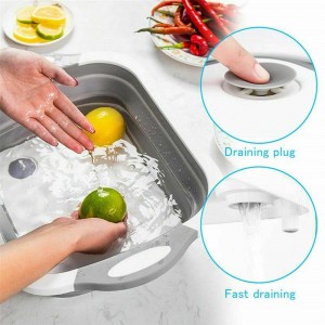 Your Position: Home > > > > QQ 4 In 1 Foldable Cutting Board/ Kitchen Multifunctional Silicone Vegetable Wash/ Drain Vegetable Sink Storage Basket/ Chopping Board with Colander/ Space Saving for Kitchen Home