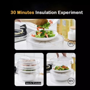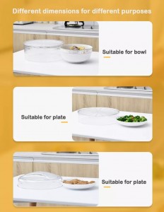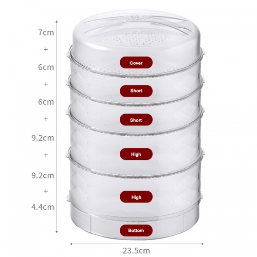 > > > QQ 6 Layers Heat Preservation Vegetable Cover Stackable Food cover Thickened Dustproof Dining Table Leftovers Warm Food Storage Tudung Saji BertingkatFeatures:- Dustproof Fresh-keeping Cover- Prevent contamination of food by flies, dust, etc.- Effective Long-lasting Insulation- Effectively lock the delicious temperature of the meals, let the family eat delicious meals.- Transparent Visualization- Transparent material, delicious meals can be seen.- Saving Space- Stable stacking, the number can be increased or decreased arbitrarily.- Curved Handle- Comfortable to hold and easily remove the lid.Specification:- Material: PET- Size:Cover:approx. 7x23.5cmShort section:approx. 6x23.5cmHeight section: approx. 9.2x23.5cmBottom: approx. 4.4x23.5cmSix-piece set: 41.8x23.5cm- Color: Transparent