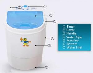 > > QQ 4.5KG Semi-Automatic Mini Washing Machine Single Barrel 2in1 Clean and Dry Portable Machine Mesin Basuh Kids Clothes Washer Dryer Small Compact Machine Portable Washer Baby Mini Laundry MachineFeatures:- Portable & Foldable- Space saving- Ergonomic table shape and wide table top- Curve table corner- Sturdy table stand- Anti slip table stand- Come is slot for device like iPad, Handphone or Tab- Cup HolderSpecification:- Material: Plastic- Size: approx. 33x 46x 33 cm- Color: White- Degree Of Automation: Semi-Automatic- Washing Capacity (kg):2.1-4.5kg- Opening Method:Top Open- Voltage (V): 220V / 50Hz- Dehydration capacity: 3kg the following- Dehydration Speed: 740Warning: When using dryer turn the knob only on the 1st level only because the other level is for washing.