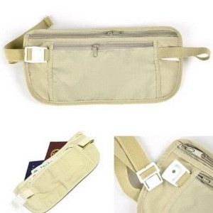 > > > > QQ Unisex Invisible Anti-theft Waist Bag Travel Outdoor Cycling Sport Hiking Ultra-thin Personal Hidden Belt Purse Pouch ID Wallet Document bags Features:- Durable and lightweight.- Strong elastic straps to fit securely and comfortably around your waist.- Body security pouch with hidden pocket & strap, breathable cloth.- Different pockets for passport, tickets, money etc.Specification:- Material: Nylon- 2 zipper pocket closure- Adjustable elastic belt- Size: approx. 13 x 26 cm- Color: Khaki
