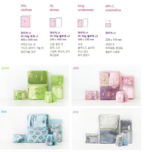 - Four different sized bags can be used for holding different kinds of things for your travel.
