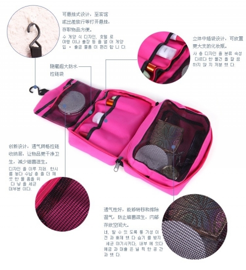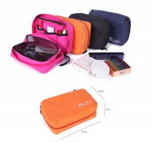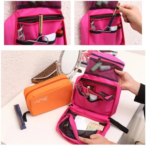 > > > QQ Storage Bags Hanging Cosmetic Bag Business Makeup Case Women Men Travel Zipper Organizer Pouch Toiletry Wash Bath KitFeatures:- Soft, comfortable, portable cosmetic bag, can be easily hung on the wall.- Breathable mesh pockets.- Good for travel, home, outdoor activities, etc.Specification:- Material: Oxford- 2 zipper compartments; 3 slot pockets- Zipper closure- Size: approx. 22 x 14 x 8cm- Color: Black, Blue, Orange, Pink