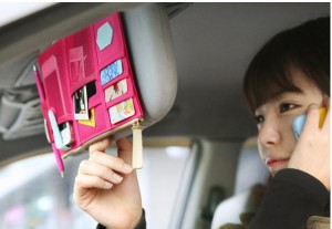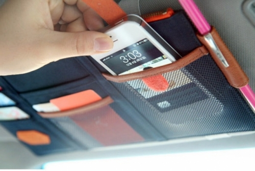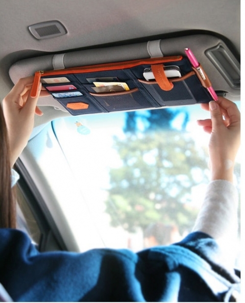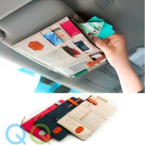 > > > QQ Car Organizer Multipurpose Sun Visor Pocket Pouch CD Card Holder Hanging Bag Automobiles Stowing Tidying Kereta Beg GantungFeatures:- Easy to arrange your stuffs.- It is a stylish, versatile way to clean up your car.- This organizer keeps everyday items out of the way and at your fingertips.- This innovative design installs easily to fit most vehicles.- Great for pens, receipts, business cards, change, paper, maps, gas cards, sunglasses, registration and more.Specification:- Material: Canvas- 1 main zipper compartment- 6 exterior slot pocket- Size: approx. 29 x 14cm- Color: Pink, Navy, Beige
