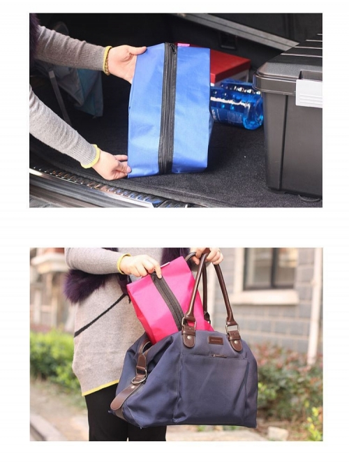 > > > QQ Portable Waterproof Shoes Pouch Travel Outdoor Toiletry Storage Tote Dust Bag Case Organizer Zipper Beg Kasut Kalis AirFeatures:- Keep Clean each kind of footwear during trip(slippers, sneakers, and shoes).- Shoe Bag has ample space to fit your shoes and protects other belongings from dirt.- Waterproof- Easy to carry with Flexible HandleSpecification:- Material: Oxford- Size: approx. 37.5 x 17.5 x 14cm- Color: Blue, Red, Pink, Grey, Green