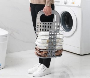 > > > QQ Folding Hanging Laundry Basket Dirty Clothes Storage Washing Hamper Basket Collapsible Laundry with Free 2 Wall Hooks Bakul Baju Boleh Lipat Space Saving for Bathroom Living Room KitchenFeatures:- Easy and safe to install with included hook, no drilling, no screws and no holes.- Foldable design for easy storage when not in use, no space, with handle, easy to use- Multiple uses laundry basket: Perfect for laundry room, bedroom, bathroom, walk-in closet, dorm, etc.- Side handle make it easy to carry along to your washing machine or to hang it on the wall to save spaceSpecifications:- Material: PP- Size: approx. 28cm x 17cm x 46cm- Color: Grey