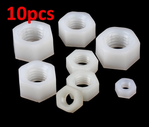> > > > 10pcs PA66 White Nylon Hex Nut Hexagon Plastic Nuts Metric Thread Suit For Screws Bolts DIN934 Standard