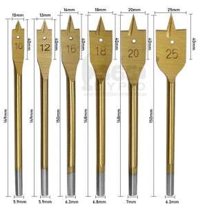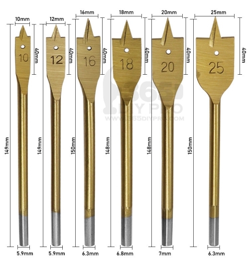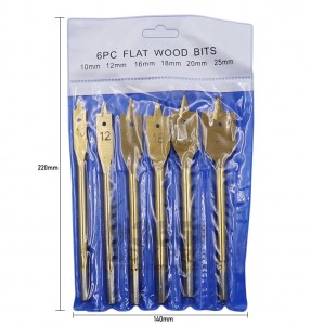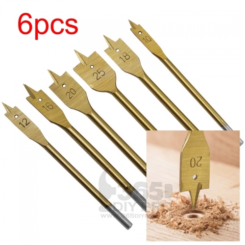 > > > > 6pcs Titanium coated High-carbon Steel Spade Paddle Bits Woodworking Flat Drilling Boring Tools 10-25MM Hole Cutter Saw Mata Tebuk KayuFeatures: