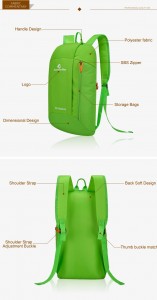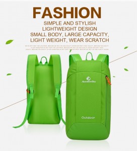 This leisure backpack is lightweight and stylish. With one pocket outside, a main compartment and a inner pocket inside for smart storage. A wonderful accessory for cycling, camping, traveling and other outdoor activities.
