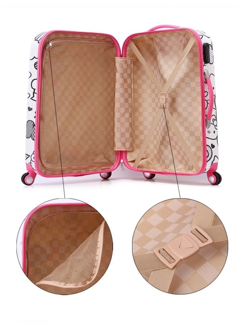 • Made from PC• Super lightweight & durable material• Highly impact resistant• Waterproof• Ultra-silence 360 degree rotating wheelsCute and fashionable Kitty Family Prints Travel Luggage Bag to meet your travelling lifestyle needs!