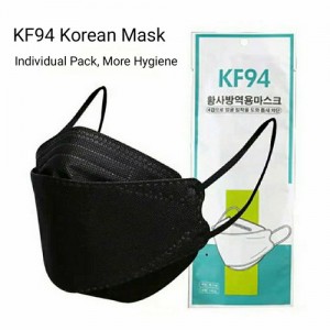 > > Premium KF94 4 Ply Mask Korea 3D Fish Mouth Design Mask High Quality Facemask Thick Black MaskFeatures :- 4-Layer Protection with high quality-‘KF’ for Korea Filter & ’94’ for ave-0.4um particulate matter filtered-min. 94% blocks up and protect against very small particles-Earloop with confortable breathable materialSpecification :Model: Black;