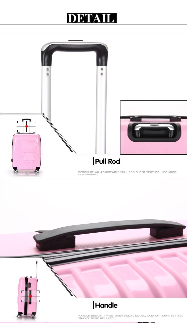 > > 20"/ 24" KT Cute Hello Kitty Travel Luggage Bag/ Suitcase Primary School Box Bag Safety Lock 360' Wheel Universal Hard Case Durable Trolley BagKT Hello Kitty Travel Luggage Bag/ Suitcase