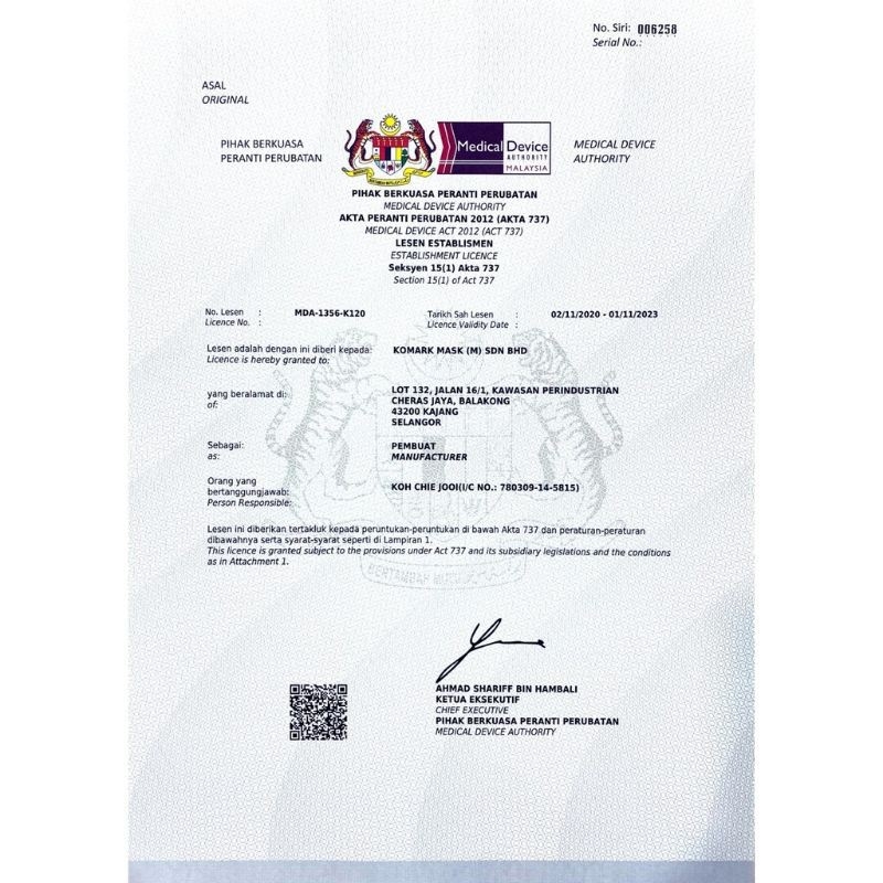 ➡️ Adaptability: Adjustable nose bridge supportSpecification- 3 layers face mask (individual wrapped)- Particulate Matter (PM): PM 0.1- Bacterial Filteration Efficiency (BFE): <>95%- Particle Filtration Efficiency (PFE): <>98%- Fluid Resistance (FR): 120mmHg- N95 filteration layer- Mode of Attachment: Ear-Loop- Usage: Disposable Single-Use- Manufacturing Standards: ASTM F2100 / EN 14683 / ISO 13485 (Lab Certified Face Mask)