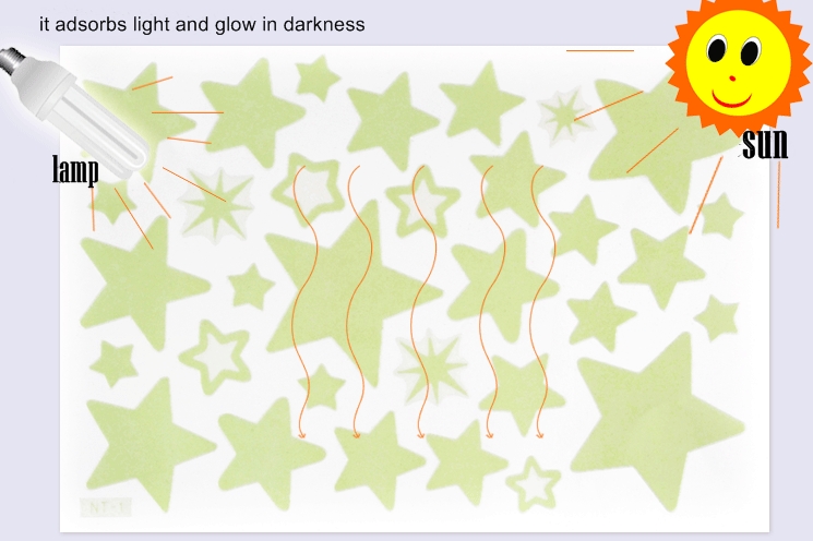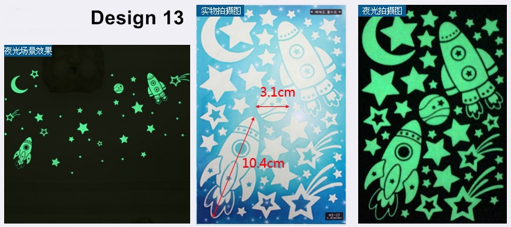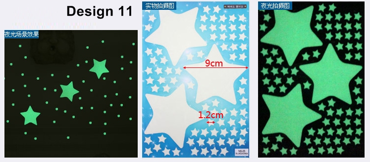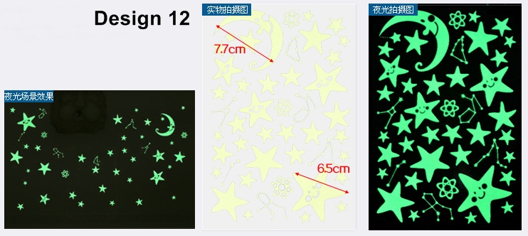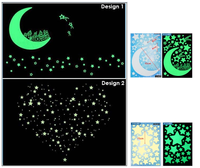 Made from PVC, these removable luminous wall stickers can be used to decorate bedroom, living room or kindergarten.